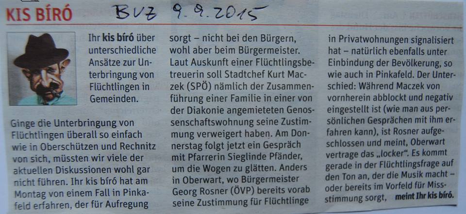Wirbel um Asylunterkünfte in Oberwart und Pinkafeld (Bezirksblätter, 11.3.2015)